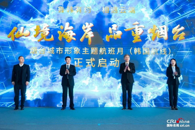 活動最後,煙臺市委宣傳部副部長趙向陽,國際在線山東頻道負責人曲學偉,山東省機場管理集團煙臺國際機場黨委副書記、董事、工會主席李揚,山東航空股份有限公司煙臺分公司副總經理王憲聰共同啟動“仙境海岸 品重煙臺”煙臺城市形象主題航班月(韓國航線)。