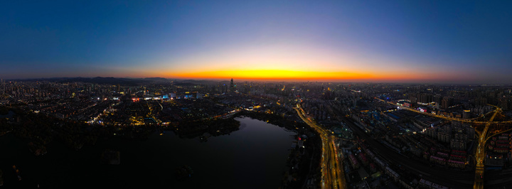 不遠處,綠地中心等摩天建築與湖畔古亭相映成趣,山巒輪廓在漸暗的天色裏愈發溫柔。航拍鏡頭下,湖水如墨硯盛著半城燈火,車流與暮色交織出老城的煙火氣。市民漫步棧橋,定格這“泉城藍調時刻”——冬日的清冷,正被晚照與煙火釀成獨有的浪漫。(濟南日報·愛濟南記者 張銘)