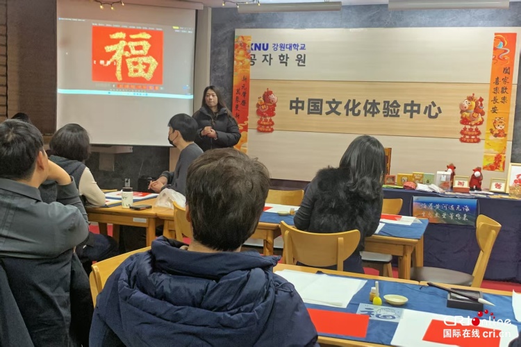 2月9日,樂享中國節“墨拓福韻”東營春節民俗文化交流活動在韓國春川市國立江原大學孔子學院中國文化體驗中心舉行。