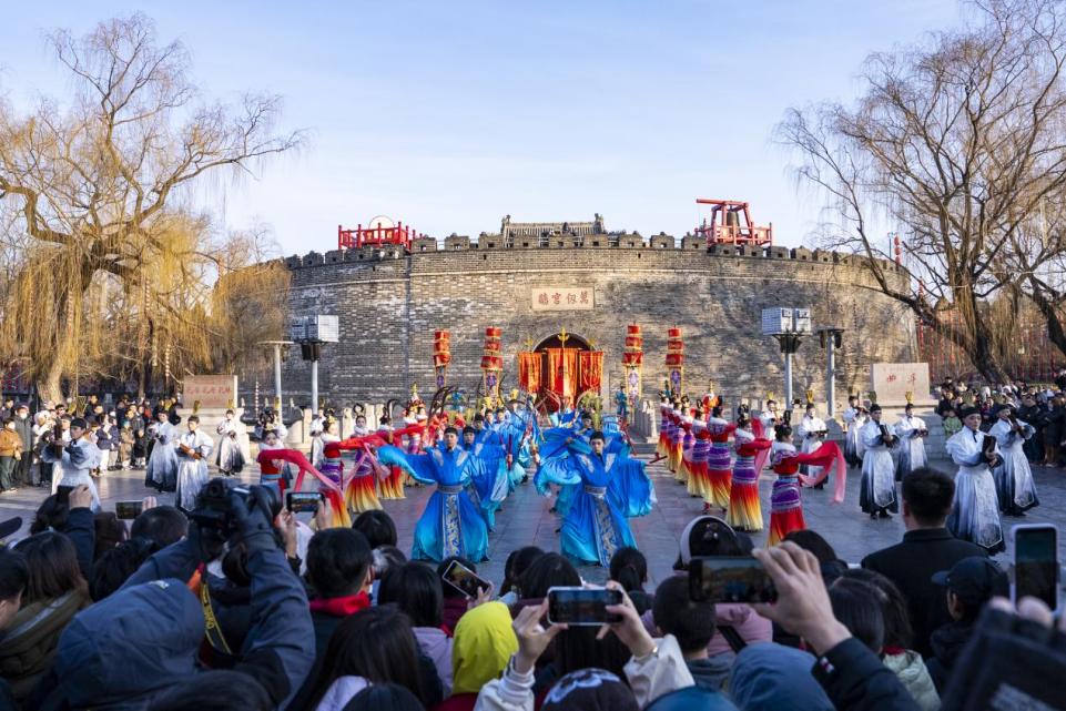 山東濟寧曲阜萬仞宮墻前開城儀式吸引遊客“打卡”留念。張清直攝