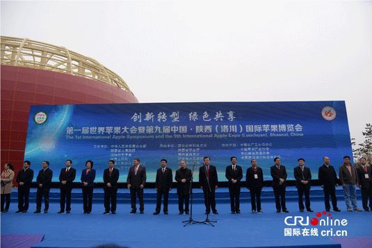國際在線陜西頻道報道(謝文靜)10月12日上午11時, 第一屆世界蘋果大會暨第九屆中國•陜西(洛川)國際蘋果博覽會在國家級(洛川)蘋果批發市場隆重開幕。第十一屆全國政協副主席李金華宣佈大會開幕,大會以“創新轉型 綠色共享”為主題。