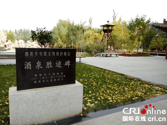 國際在線陜西頻道報道(王夢凡):10月20日,“尋找絲路上的陜西元素”媒體採訪團來到酒泉,與這座絲路古郡展開了一次美麗的邂逅。“酒泉酒美泉香,雪山雪白山蒼,多少名王名將。幾番回想,白頭醉臥沙場。”我國近現代政治家、教育家和書法家、陜西三原人于右任先生曾于1941年9月在甘肅酒泉,暢遊酒泉公園時留下了著名的《越調·天凈沙·酒泉道中》,道盡了酒泉的歷史積澱。