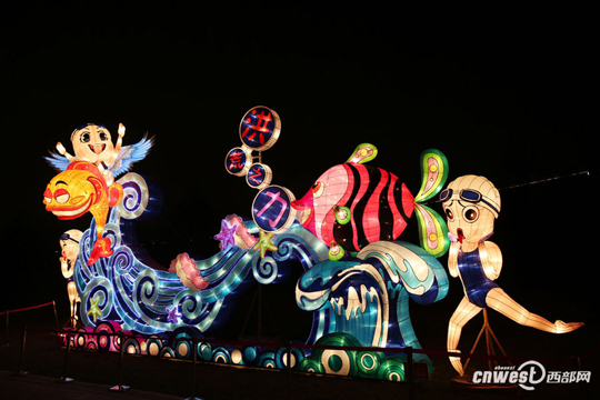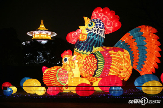 2017大唐芙蓉園新春燈會亮點多多,除了《百鳥和鳴 鳳舞九天》、《錦上添花》等雞年主題的大型水上燈組外,陜西特色的《陜西花饃》、《布老虎鞋》等也被做成了綵燈,遊客還能看到網紅傅園慧的《洪荒之力》表情包綵燈。