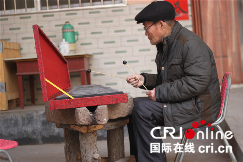 國際在線陜西頻道:打開“石琴”,68歲的農村退休教師丁均地,用顫巍巍的雙手開始敲擊琴鍵,儘管個別地方有音準的瑕疵,但清脆的音樂聲中,這首《東方紅》卻被演繹得別有一番味道。