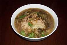 鳳縣漿水面:鳳縣漿水面,其味酸、辣、清香,別具一格,相傳該名是由漢高祖劉邦與臣相蕭何在此吃麵時所起。它一直是鳳縣人民喜愛的麵食,漿水菜的菜以芹菜為佳,白菜、蘿蔔纓也可。製作時,將菜洗凈,在沸水中煮燙至蔫,取出放入瓦盆罐中,加入麵湯,一至二日待菜色變為金黃即可,再用食油,精鹽,加蒜苗炒熟,配以蔥花、姜末,花椒粉等佐料,燴入炒熟的漿水菜作為潲子。漿水麵條要用人工搟制,使之葉寬、條長、片薄。將煮熟的麵條入碗,調上漿水菜的潲子,澆上辣椒紅油,漿水面即成。它看上去紅白黃相間,入口酸辣清香,回味無窮,並具有開胃之功效,是鳳縣特有的小吃。
