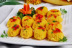 鳳縣漿粑饃:做漿粑饃方法有兩種:一種是將硬頂玉米剝下後,加少量清水磨細,然後將磨細的糊狀漿粑攤在包包菜葉上,再把備好的核桃仁、辣椒、調料放在上面,卷成放在蒸籠裏,約半小時即成。另一種方法是將磨細的糊狀漿粑,放在鍋裏烙成薄餅子,吃時蘸蜂蜜,也可將餅子曬乾後切成小塊,炒肉吃,味道更好。但不論用哪種方法做成的漿粑饃,吃起來都別有風味。