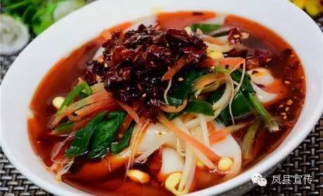 推薦理由:最愛的是那過癮的油潑辣子!沒有別的修飾,只有熱辣酸爽,面皮熱騰騰的蒸出來還帶著溫度,切成大塊直接送到面前,恨不得一口吃掉。(來源 鳳縣宣傳)