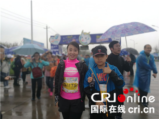 來自咸陽的張蓁平時也熱愛跑步,已跑了三年的馬拉松。此次家門口的國際性馬拉松讓她倍感興奮,於是帶著孩子一起來參賽。“我覺得家長的行為對孩子是有很大影響的,由於我喜歡跑步,兒子李伯豪也很喜歡運動。我希望他能夠感受到國際性賽事萬人奔跑的氛圍,磨練堅持的意志。”張蓁告訴國際在線陜西頻道。