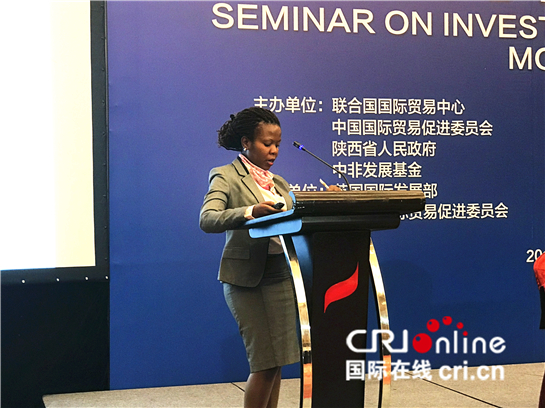 國際在線陜西頻道報道(王夢凡):“2017年中國與非洲四國投資研討會”于6月5日在西安開幕。陜西省省委常委、副省長、省委統戰部部長姜鋒,中國貿促會貿易投資促進部副部長朱淩燕,中非發展基金副總裁王勇,聯合國國際貿易中心亞太事務總監蔣學軍出席開幕式並致辭,埃塞俄比亞投資委員會(EIC)副委員長Teka Gebereyesus先生,肯尼亞投資促進局投資促進官Heather MbaikaMunyao女士,莫桑比克投資促進中心(CPI)市場服務協調官員NunoMaposse先生,贊比亞發展署(ZDA)經理Jessica M .Chombo女士分別就其本國投資環境與政策、貿易機會及優勢行業做了詳細介紹,中國貿促會商法中心副處長王琳潔就“投資非洲風險防範”為參會代表做了專題培訓。陜西省貿促會會長、黨組書記薛華先生主持開幕式。