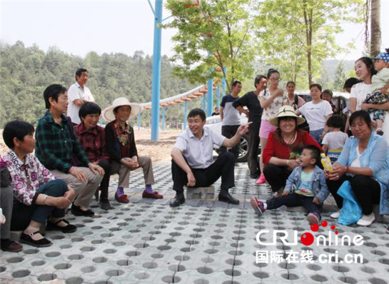柯小海與村民們在一起聊家常(李瑞 攝)