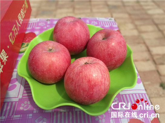白水縣果農展示自己的蘋果(王偲瑤 攝)