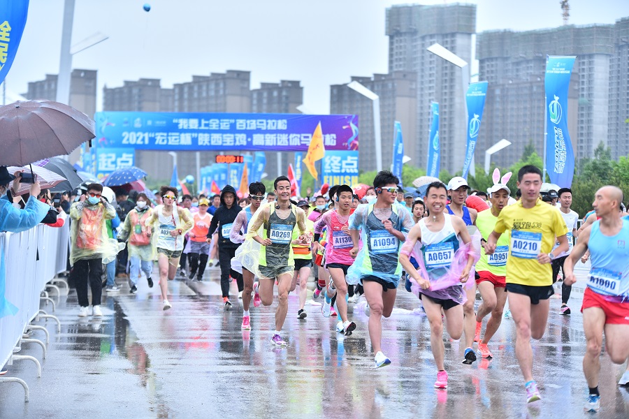 5月15日,“我要上全運”百場馬拉松2021“宏運杯”陜西寶雞·高新迷你馬拉松賽在寶雞高新區科技新城開跑,全國各地的3500余名專業選手和跑步愛好者參加本次馬拉松賽。