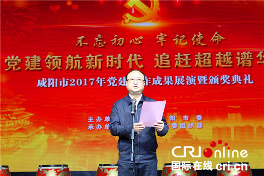 國際在線陜西頻道報道(段曉蕊):12月28日,陜西省咸陽市2017年黨建工作成果展演暨頒獎典禮在陜西省咸陽市大秦劇院隆重舉行。本次活動由咸陽市委組織部主辦,以“不忘初心,牢記使命,黨建引領新時代,追趕超越譜華章”為主題,旨在展示咸陽市黨建成果,引領工作推進,激勵先進、激發幹勁,動員廣大黨員幹部不忘初心,牢記使命,再接再厲、再啟新程,推動咸陽市黨建工作再創新佳績、再上新臺階。