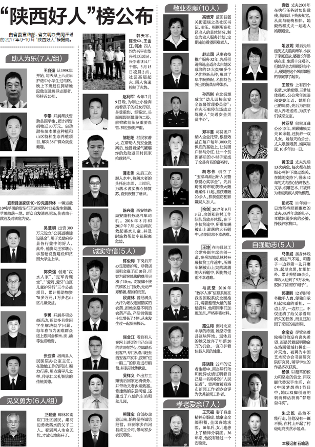由省委宣傳部、省文明辦共同評選的2017年9-10月“陜西好人”榜揭曉。