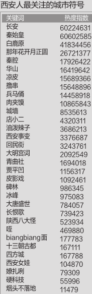 “全國人眼中的西安”在藍皮書中最吸引人,課題組通過今日頭條網絡熱搜大數據,提煉出2017大西安網絡熱詞指數,從中發現,跟隨西安一同上榜的熱詞中,除了大家意料之中的“秦始皇”“兵馬俑”“長安”“涼皮”“肉夾饃”等西安標誌性元素,有一個看似跟西安毫無關聯的女人,強勢衝進熱搜前三甲,她就是“國民娘娘”孫儷。