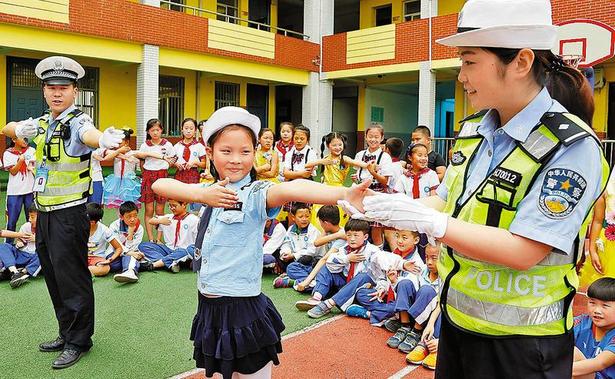 昨日(5月28日),華州區城關小學,民警手把手教孩子們學習交通指揮手勢。