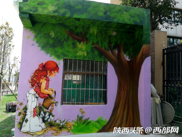 為了美化市容,杜絕圍墻和不起眼的公共設施上容易産生牛皮癬,灞橋區城市管理局提出“城市傢具”美化工程概念,請來專業的美術師對圍墻和老舊設施進行了美化彩繪,有效杜絕了亂貼亂畫現象。