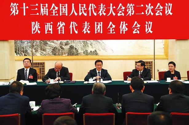 3月5日下午,中共中央政治局常委、國務院副總理韓正來到他所在的陜西代表團,同代表們一起審議政府工作報告。 記者 宋紅梅攝