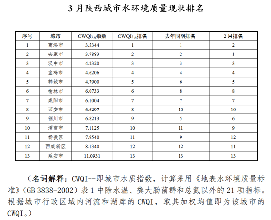 國際在線陜西消息:近日,陜西省生態環境廳發佈陜西省2019年3月水環境品質狀況,商洛市水環境品質排名第一。