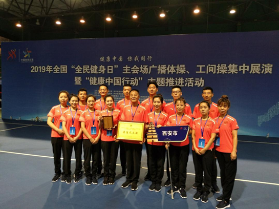 國際在線陜西消息:近日,2019年全國“全民健身日”主會場廣播體操、工間操集中展演暨“健康中國行動”主題推進活動在西安拉開帷幕,西安經濟技術開發區(以下簡稱“經開區”)企業經發誠運公司代表隊代表西安市參加全國廣播體操展演,榮獲“最佳風采獎”獎項。