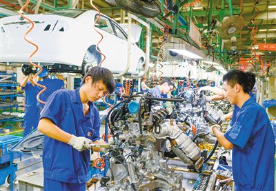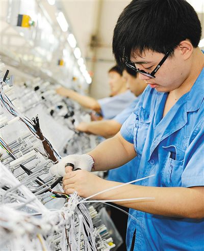 比亞迪生産車間,工人正在生産車輛部件。記者 竇翊明 攝于2014年