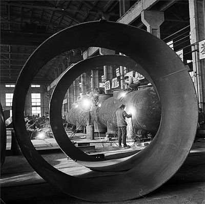 在渭北工業區一車間,工作人員正在緊張工作。記者 竇翊明 攝于2012年