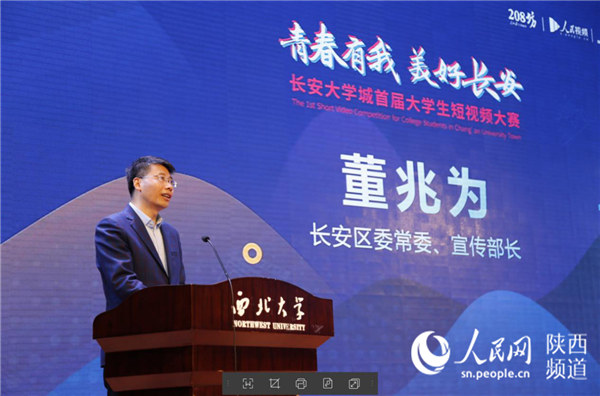 11月26日上午10時,由人民日報社陜西分社,西安市委網信辦,長安區委、區政府,人民視頻指導,人民日報社陜西分社208坊、中共西安市長安區委宣傳部、中共西安市長安區委網信辦、人民視頻陜西基地等共同主辦的“長安大學城首屆大學生短視頻大賽”在西安市長安區拉開帷幕。人民日報社陜西分社社長王樂文,西安市委宣傳部常務副部長蔣少寧,西北大學副校長賴紹聰,人民網陜西頻道總經理袁飛等來自政界、業界、學界的400余人共同見證了這一美好時刻。