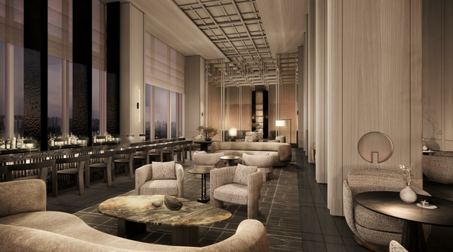 這座266米的高層酒店,內在空間大量運用多層屏風營造出神秘感,激起了人們探索的好奇心,一眼覽盡的屏風和隱約朦朧的鏤空屏風相結合,共同織就了一個充滿好奇心與想像力的空間,吸引著人們進入其中感受自我。