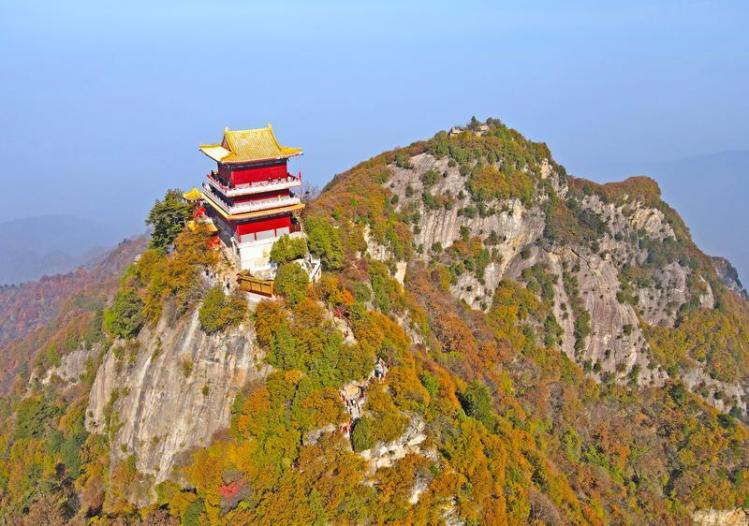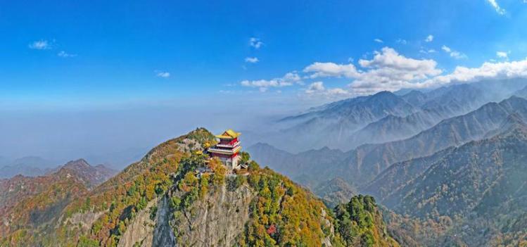 秋冬之交的南五台景區,恰似大自然以五彩顏料暈染的絕美長卷。南五台坐落于秦嶺終南山中段北麓,獨特的褶皺斷塊地貌讓這裡的景觀層次豐富而立體。登上南五台之巔,向遠方眺望,漫山的紅葉如熾熱雲霞翻騰,黃葉似碎金肆意鋪灑,再加上錯落其中的古寺樓宇、曲折山道,共同勾勒出一幅雄渾又秀美的山水勝景。