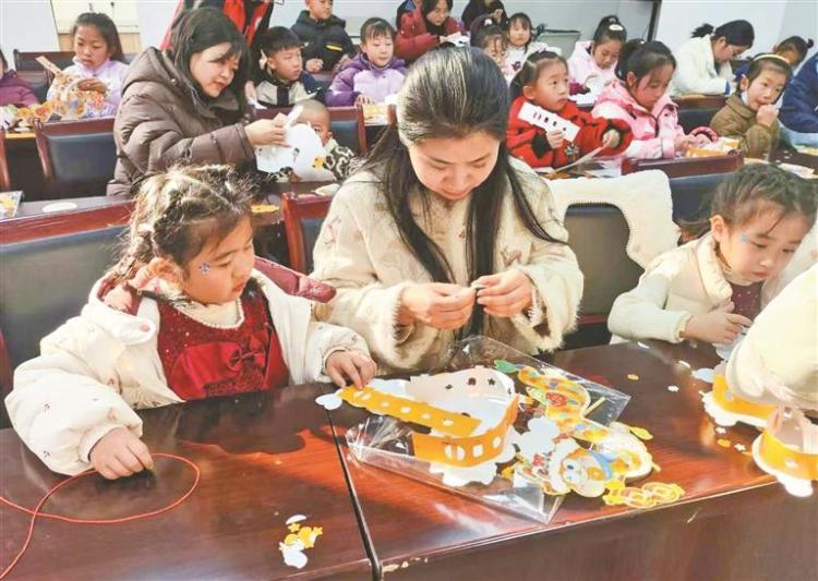 11月18日,在勉縣勉陽街道何營社區秋假託管課堂,志願者耐心指導小朋友做手工。 趙趣攝