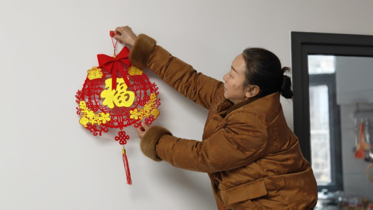 陳麗萍將大紅福字挂在新家,更挂在心頭