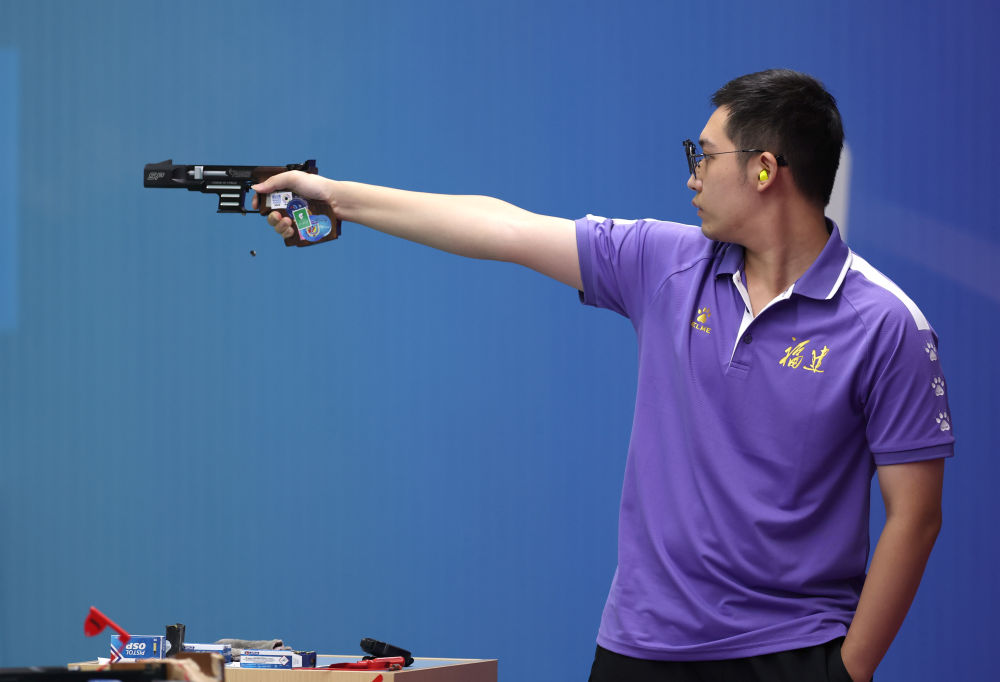 男子25米手槍速射比賽同樣“令人窒息”。上屆冠軍、奧運冠軍、山東隊名將李越宏未能晉級決賽。福建隊蘇連博凡以588環排名資格賽第一,陜西隊何世瑜位列第二。