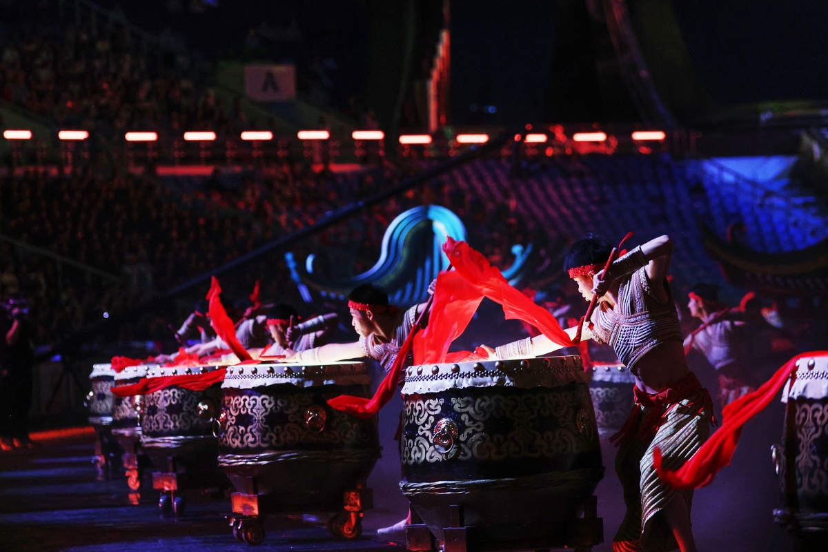 本次綵排全面模擬11月9日開幕式正式流程。在持續4個月的排練後,各部門協同作戰,為正式演出奠定了堅實基礎。開幕式通過“同根同源、同心同緣、同夢同圓”三大篇章,將嶺南醒獅、粵劇水袖、龍舟競渡、中華戰舞等傳統文化元素,與人工智能、VR、機器人等前沿科技深度融合,打造出一場“古今對話”的沉浸式藝術盛宴。