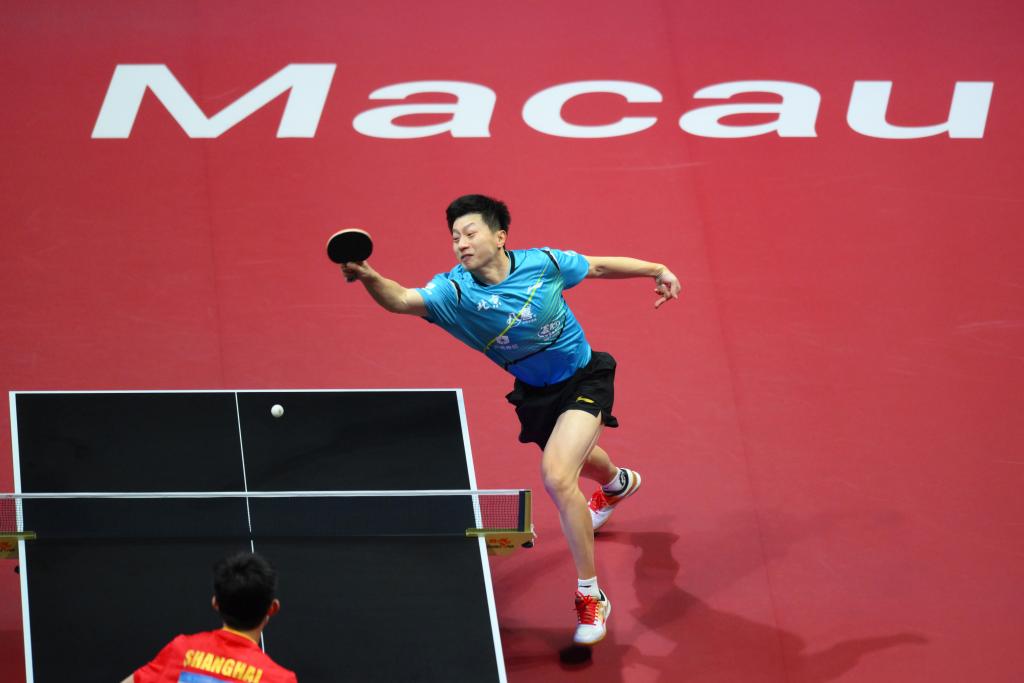 11月20日,北京隊選手馬龍在男單比賽中回球。新華社發(張金加攝)