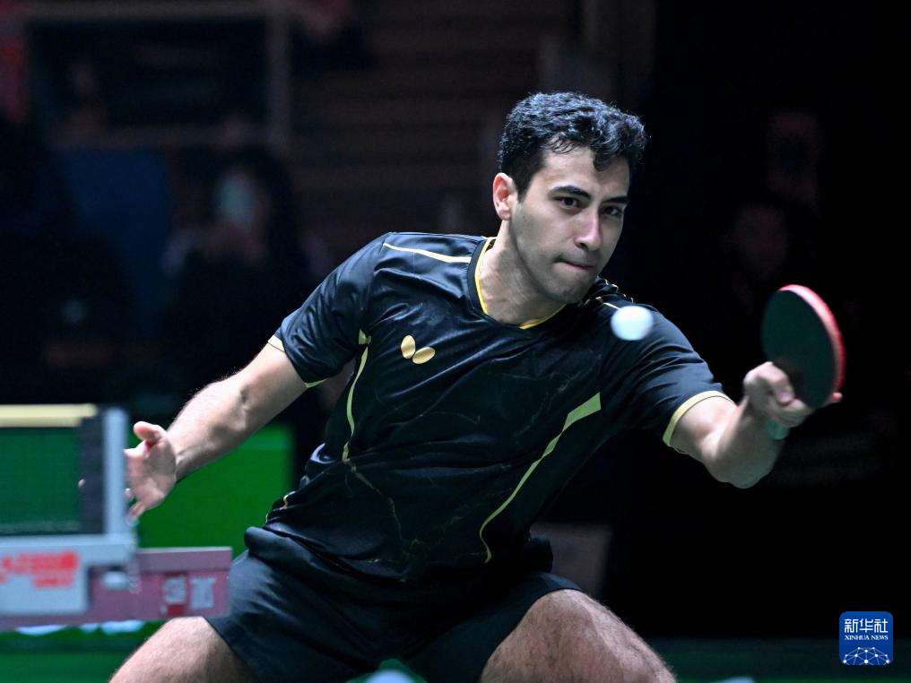 12月1日,埃及隊選手約瑟夫·阿卜杜拉齊茲在男單比賽中回球。他0比3不敵中國隊選手王楚欽。