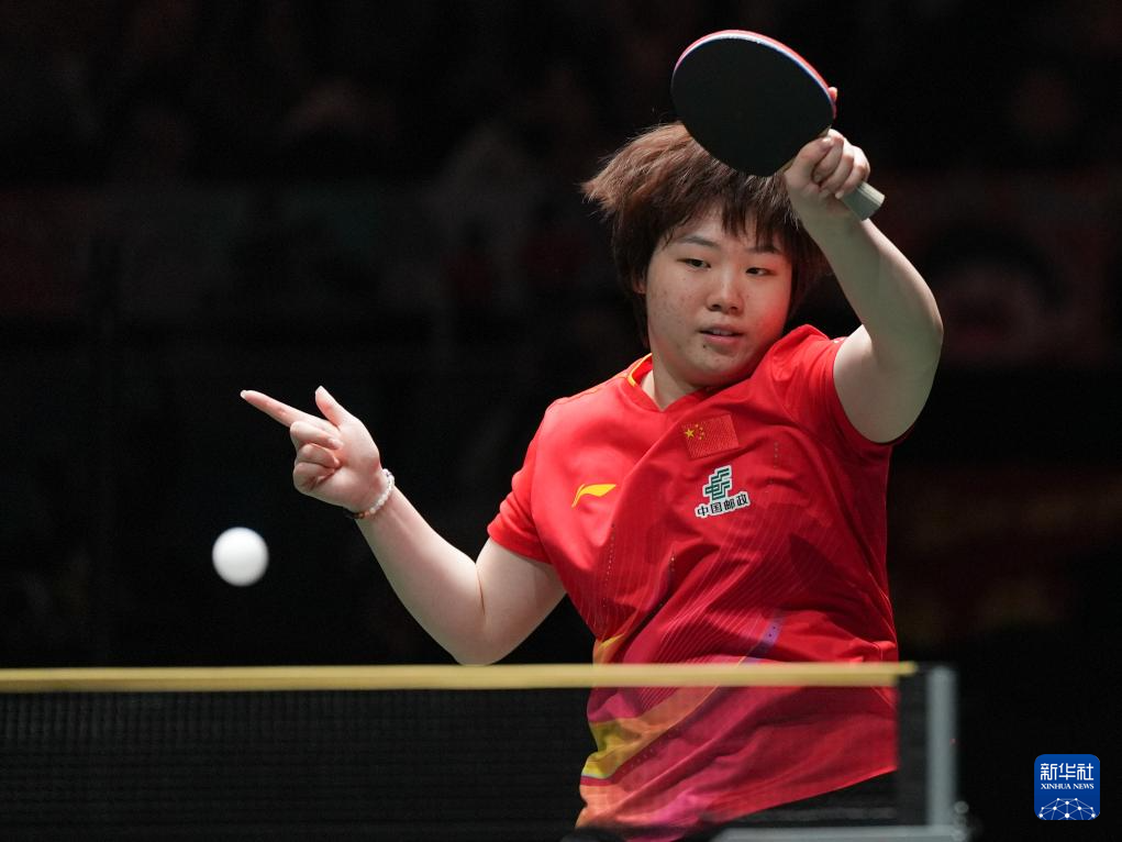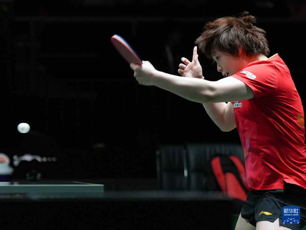 12月3日,中國隊選手蒯曼在女單比賽中回球。她3比0戰勝克羅地亞隊選手伊凡娜·馬洛巴比克。