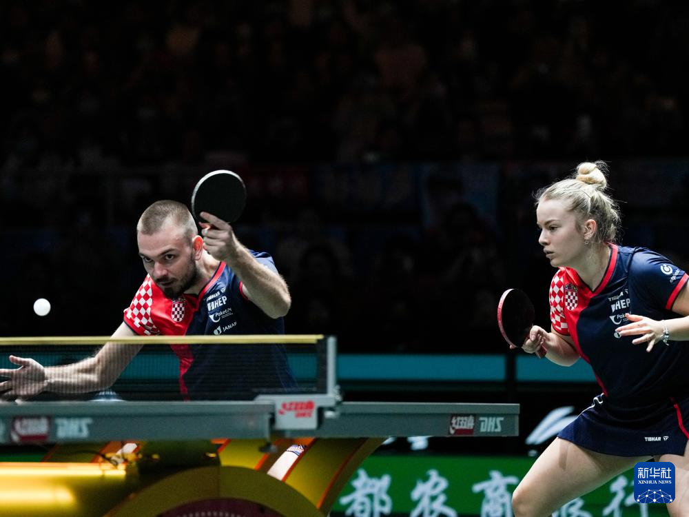 12月3日,克羅地亞隊組合伊沃·本(左)/哈娜·阿拉波維奇在混雙比賽中。他們0比3不敵中國隊組合王楚欽/孫穎莎。