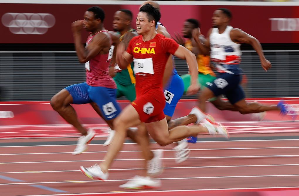 2021年8月1日,在東京奧運會田徑男子100米半決賽中,中國選手蘇炳添跑出了9秒83的成績。新華社記者 王麗莉 攝