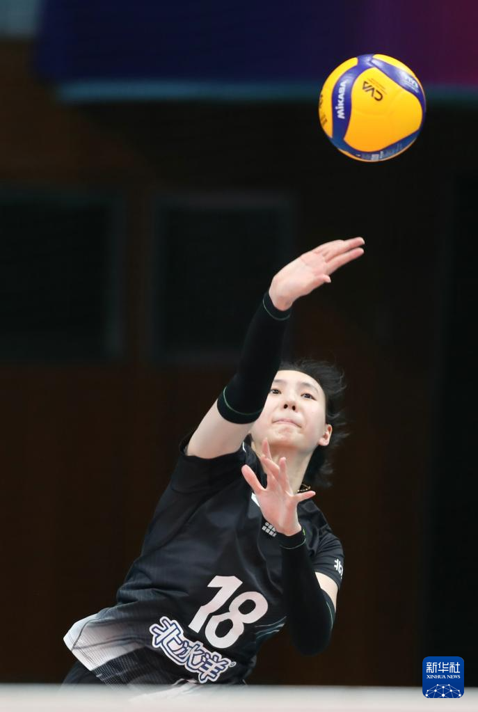 1月6日,北京北冰洋隊球員金佳寶在比賽中發球。