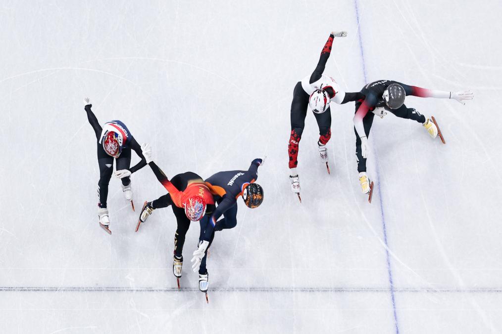 2月12日,孫龍(左二)衝過終點線。新華社記者 陳益宸 攝