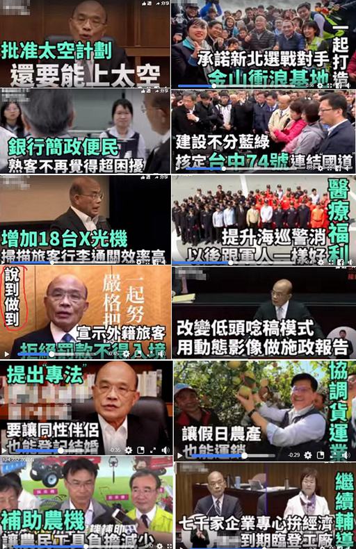 3月3日晚,蘇貞昌在自己的臉譜網上自稱公佈了一則名為《衝衝衝的五十天》的政績影片,這支短片雖然只有1分20秒,但信息量那是相當相當大的啊:影片用Google小姐語音念旁白,細數了蘇“內閣”50天的驕人政績。