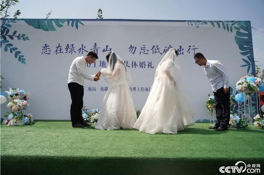 央視網消息(褚剛 薛益中 黃繼惠) “我們風雨同舟,患難與共,相濡以沫,鍾愛一生……”5月20日是信息時代的愛情節日,也是武漢三角湖水環境綜合整治竣工的大喜日子。在眾多武漢市民的見證下,來自中交二航局六分公司三角湖水環境綜合整治項目部的兩對新人喜結連理,彼此進行了愛情宣誓。