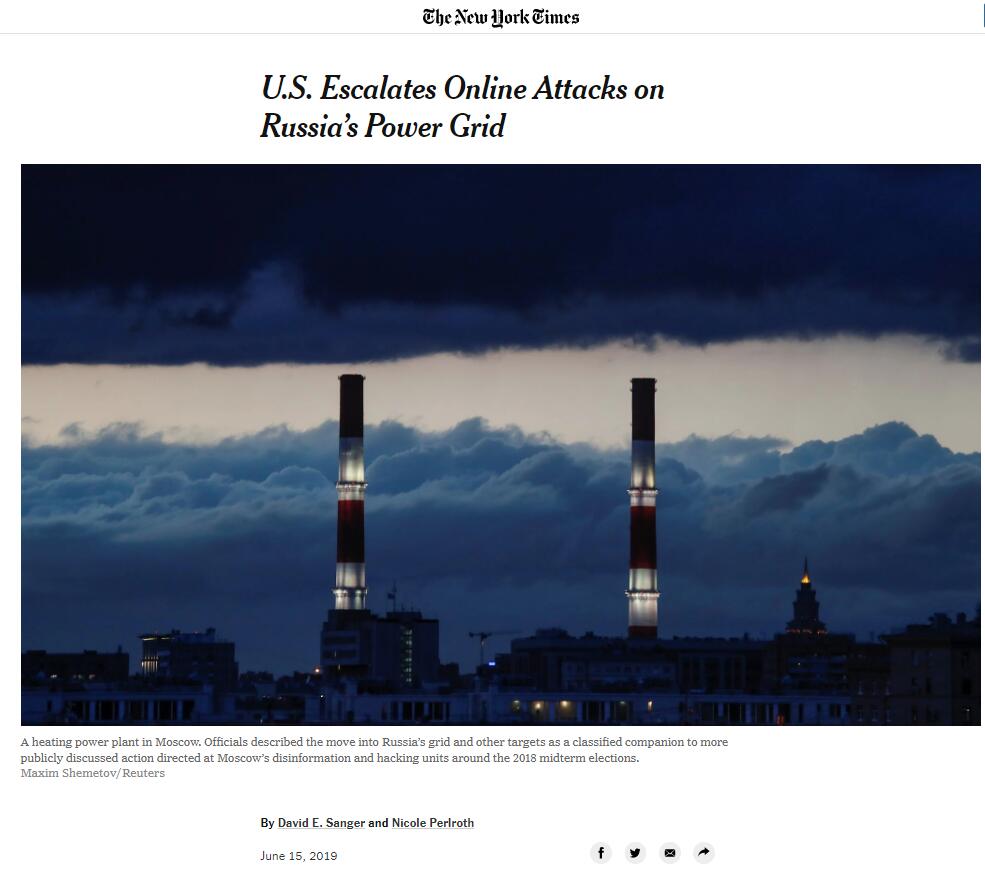15日,《紐約時報》援引多位現任及前任美國政府官員的話發文稱,美國正在加大網絡入侵俄羅斯電力網絡,以此作為對俄羅斯的警告。如果與俄羅斯發生重大衝突,美國也有能力發動網絡攻擊。CNN援引《紐約時報》消息稱,去年,美國國會通過了軍事授權法案,而美國此次入侵俄羅斯電網的行動似乎是在這一法案框架下進行的。受訪官員還透露,他們認為特朗普還不了解相關細節,但對特朗普針對俄羅斯行動將如何反應表示擔憂。
