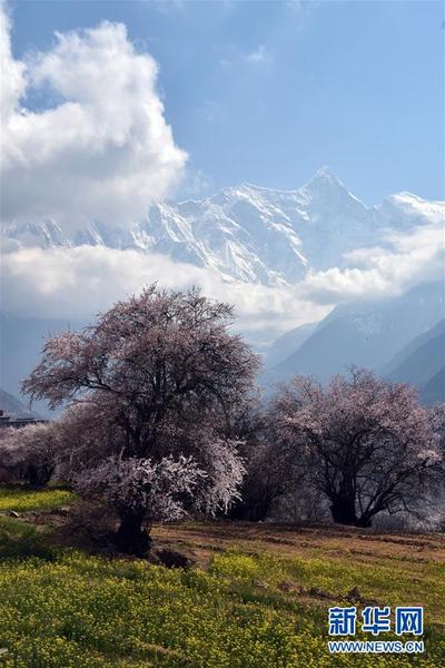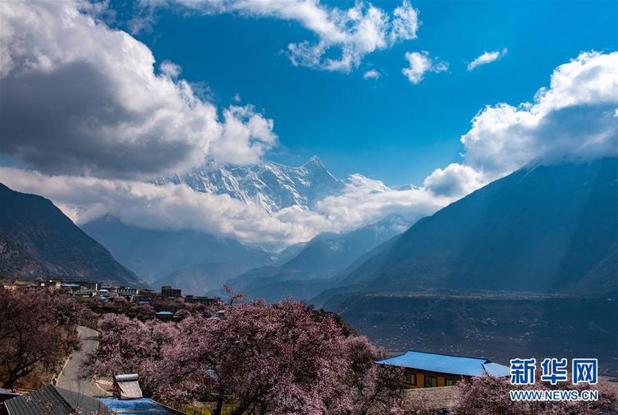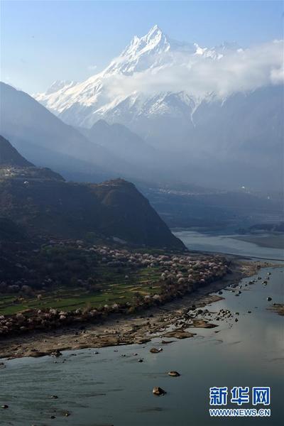 雅魯藏布江大峽谷中桃花盛開的田野(4月1日攝)。 春天到來,雅魯藏布江大峽谷中的桃花次第開放,將河谷兩岸裝點得如詩如畫。 新華社記者 黃豁 攝