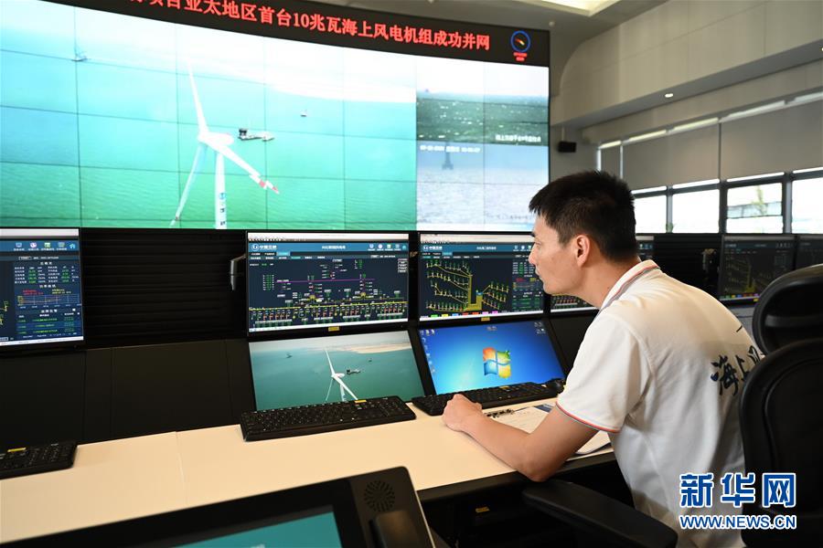 記者7月13日從三峽集團了解到,國內首臺10兆瓦海上風電機組日前在三峽集團福建福清興化灣二期海上風電場成功並網發電,這是目前我國自主研發的單機容量亞太地區最大、全球第二大的海上風電機組,刷新了我國海上風電單機容量新紀錄。 新華社記者 林善傳 攝