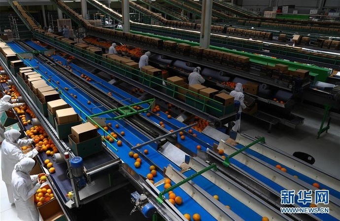 採摘後的橙子將被送進包裝車間進行初步分揀、洗滌和乾燥。然後,經過進一步的人工分揀和電子分揀,按照橙子的尺寸、顏色和缺陷程度分級並最終打包,以出口亞歐國家。