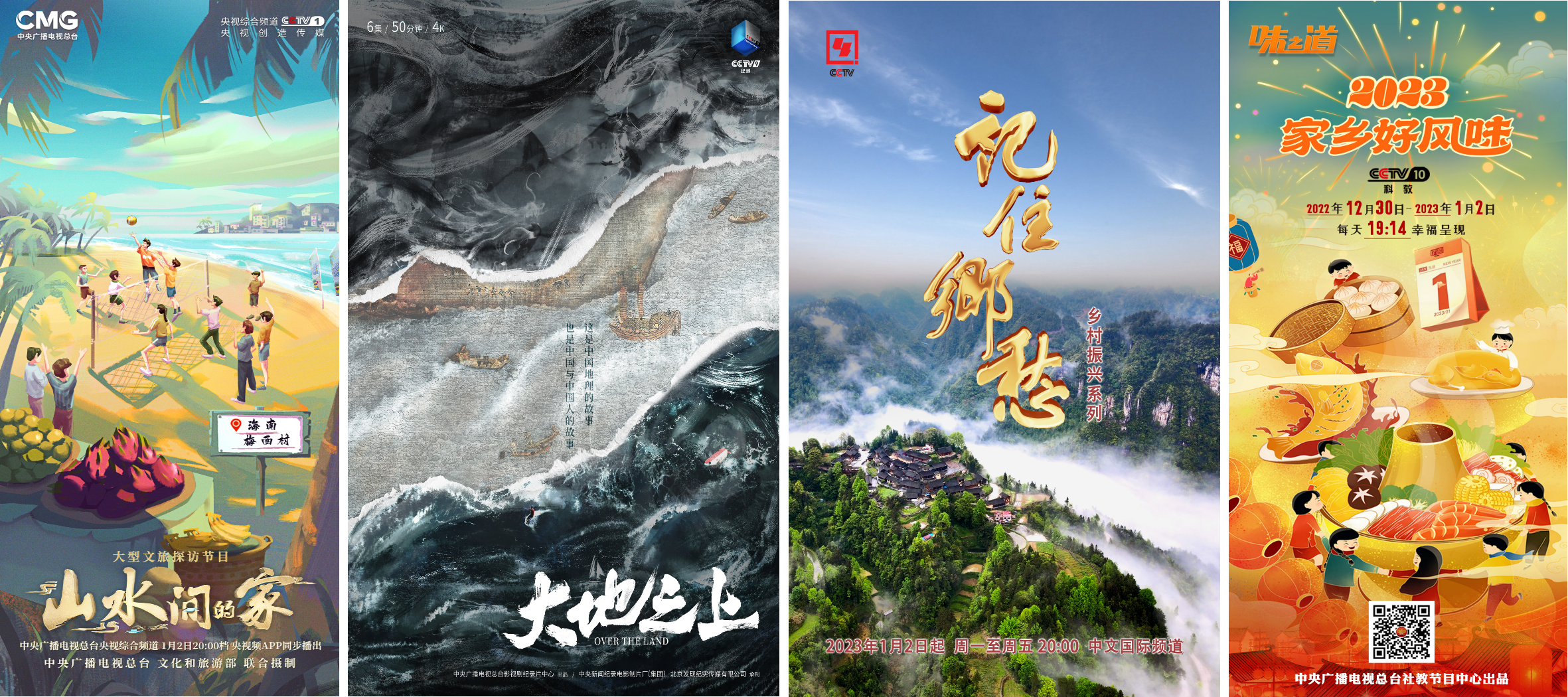 物阜年豐,家鄉味濃。在文旅探訪節目《山水間的家》中雲遊美麗鄉村;在紀錄片《大地之上》中聆聽中國地理故事;在大型紀錄片《記住鄉愁》中找尋情感認同;跟著特別節目《2023味之道·家鄉好風味》品嘗浙江毛蟹、貴州臘八件、溫州酒香肉脯……一篇篇樸實的散文在鄉村書寫,一段段山河壯闊的風物之旅在大地蔓延,一趟趟暖心的美食之旅在味蕾間流轉。