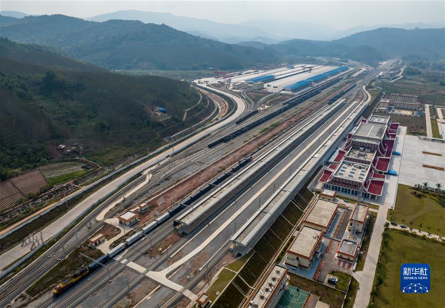 2023年2月22日拍攝的中老鐵路磨憨站(無人機照片)。新華社記者 江文耀 攝