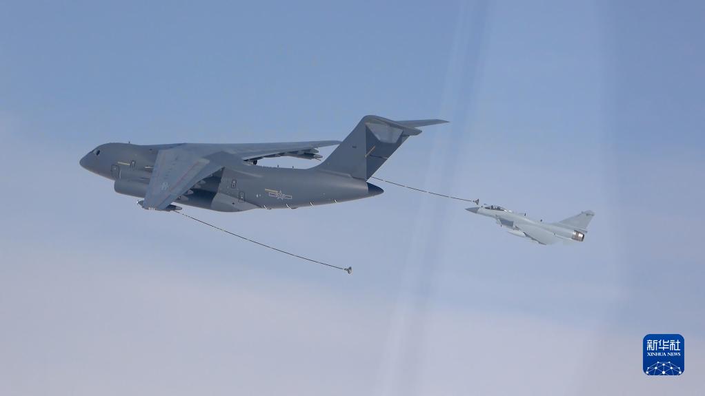 這是戰機在進行空中加油(4月9日攝,視頻截圖)。新華社發