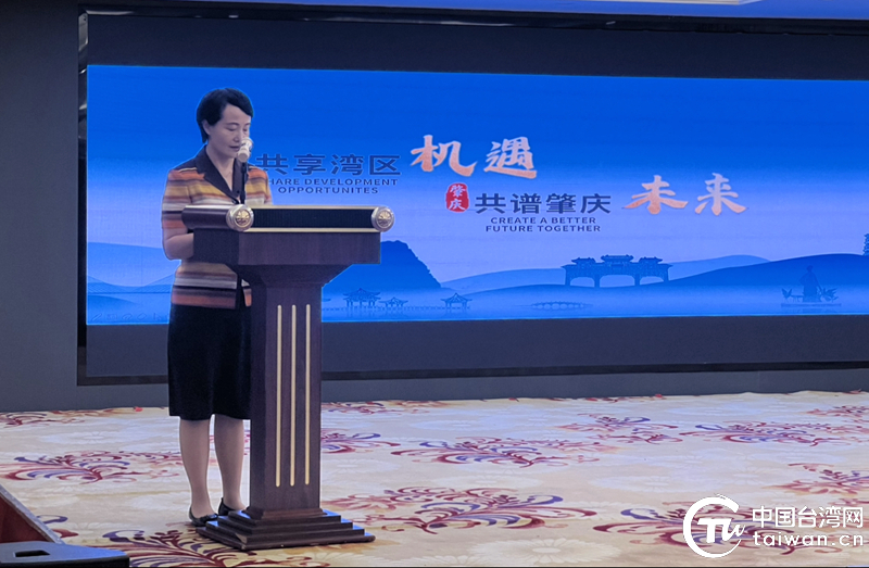 肇慶市臺港澳事務局二級調研員翟碧淩在投資推介會上致辭。(中國台灣網 鬱誠 攝)